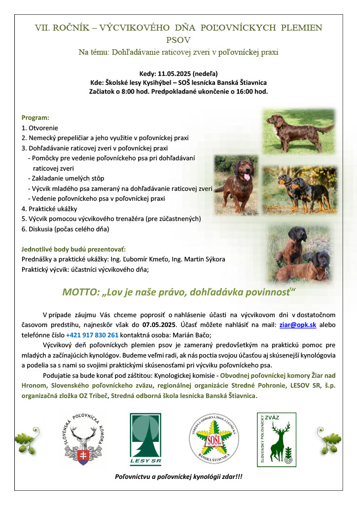 Dňa 8. novembra 2025 usporiadala Obvodná poľovnícka komora Žiar nad Hronom v spolupráci s Poľovnou spoločnosťou Kľakovská dolina v poľovnom revíri Píla predbežné skúšky farbiarov. Na skúškach sa zúčastnilo trinásť psov z toho dva hanoverské farbiare, dva bavorské farbiare, tri štajerské duriče, tri alpské jazvečíkovité duriče, dva tatranské duriče a jeden slovenský kopov. Počas celého trvania skúšok sťažoval prácu psov vytrvalý dážď. V náročných podmienkach zo zúčastnených psov a ich vodičov v skúške obstálo sedem v l.cene, tri v lll. cene a tri v skúške neobstáli. Víťazom skúšok sa stala bavorská farbiarka VLARA Devana s vodičom Jánom Mečiarom s počtom bodov 200. Úspešní absolventi skúšok získali poľovnú upotrebiteľnosť na dohľadávanie jelenej, danielej a muflonej zveri. Gratulujeme.
